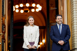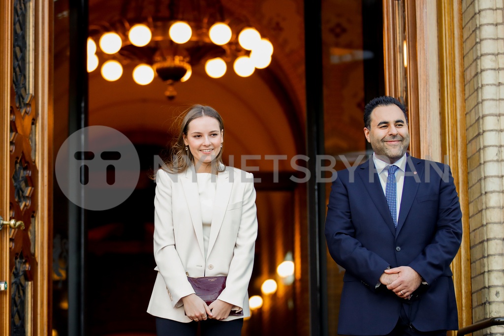 Oslo 20220120. Prinsesse Ingrid Alexandra blir tatt i mot av stortingspresident Masud Gharahkhani når hun ankommer til Stortinget på offisielt besøk i forbindelse med at hun fyller 18 år. Foto: Javad Parsa / NTB