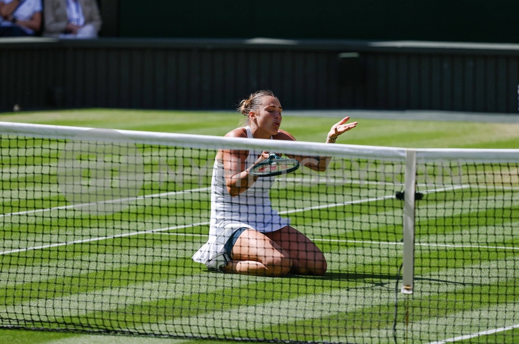 Wimbledon Championships 2025 Day 9, 08/07/25 Ladies’ Singles - Quarter Final Centre Court Aryna Sabalenka v Laura Siegemund Aryna Sabalenka celebrates winning in 3 sets Material must be credited "The Times/News Licensing" unless otherwise agreed. 100% surcharge if not credited. Online rights need to be cleared separately. Strictly one time use only subject to agreement with News Licensing. 08 Jul 2025 Pictured: Wimbledon Championships 2025 Day 9, 08/07/25 Ladies’ Singles - Quarter Final Centre Court Aryna Sabalenka v Laura Siegemund Aryna Sabalenka shows her frustration Material must be credited "The Times/News Licensing" unless otherwise agreed. 100% surcharge if not credited. Online rights need to be cleared separately. Strictly one time use only subject to agreement with News Licensing. Photo credit: News Licensing / MEGA TheMegaAgency.com sales@mega.global