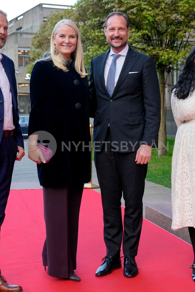 Kronprinsesse Mette-Marit og kronprins Haakon er til stede ved en middag på Nasjonalbiblioteket i anledning Fosseforedraget og utdelingen av Fosseprisen.