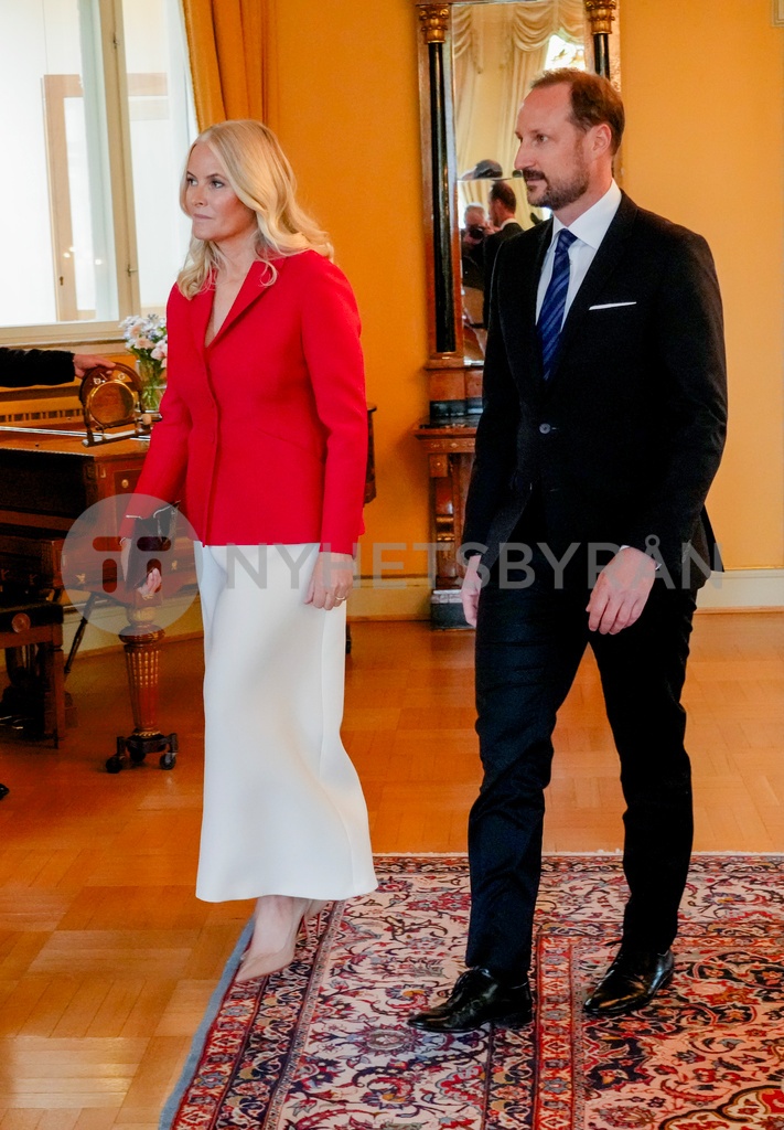Oslo 20240506. Kronprinsesse Mette-Marit og kronprins Haakon i statsministerboligen. Foto: Terje Bendiksby / NTB / POOL
