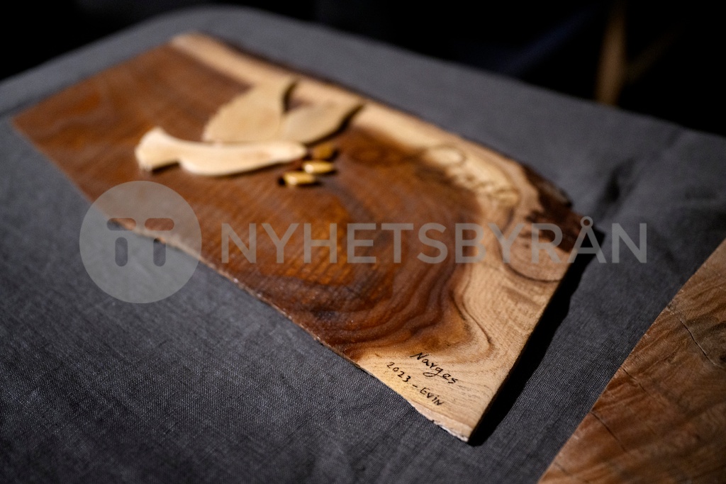 STOCKHOLM 20231213 Årets Nobel fredspristagare Narges Mohammadi, som sitter fängslad i Iran, representeras av sina två barn, 17-åriga Ali och Kiana Rahmani. I dag besöker de Stockholm tillsammans med sin pappa Taghi Rahmani, make till Narges Mohammadi och överlämnar ett flertal föremål till Nobelprismuseet i Gamla stan. Trätavlorna är gjorda av Narges Mohammadi i fängelset. Foto: Jessica Gow / TT / kod 10070