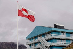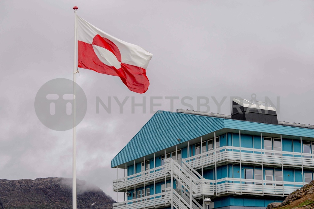 Picture taken on July 2, 2024 shows the Greenland flag in the town of Sisimiut in Greenland. Sisimiut is Greenland's second largest town with nearly 5, 500 inhabitants. Donald Trump confirmed on January 6, 2024 that his eldest son Don Jr plans to visit Greenland, two weeks after the US president-elect suggested that Washington annex the autonomous Danish territory. (Photo by Ida Marie Odgaard / Ritzau Scanpix / AFP) / Denmark OUT