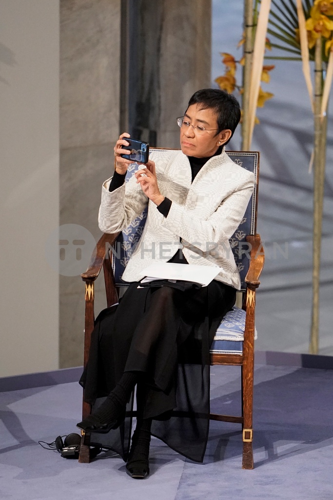 Oslo 20211210. Fredsprisvinner Maria Ressa under utdelingen av Nobels fredspris i Oslo rådhus. Foto: Cornelius Poppe / NTB