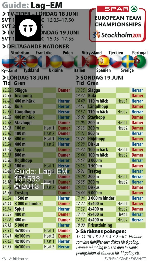 Guide till lördagens och söndagens tävlingar i Lag-EM i friidrott i Stockholm. TV-tider, program mm