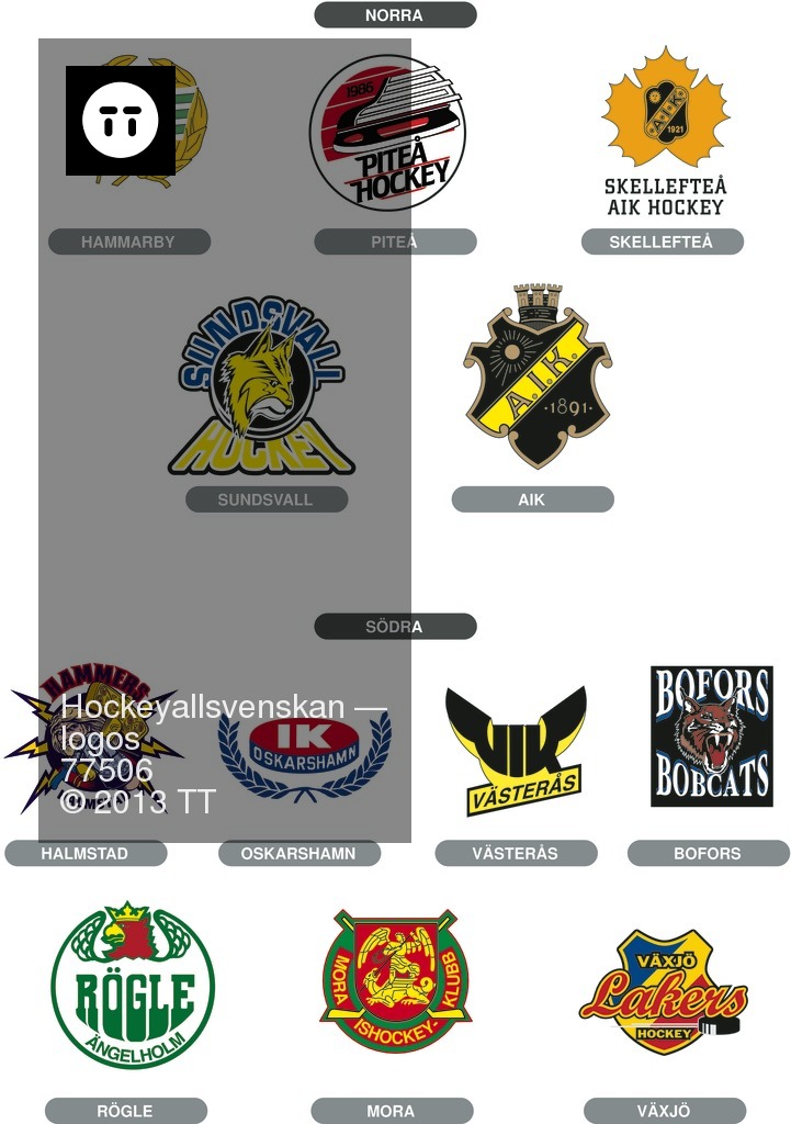 NU OCKSÅ MED V€XJÖ OCH V€STERÅSFil med logotyper för de fem topplagen i hockeyallasvenskan södra och norra.