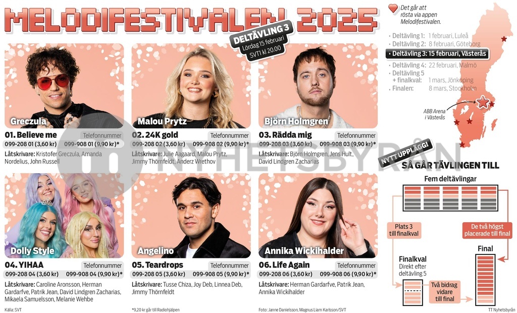 Presentation av artisterna som deltar i den tredje deltävlingen i Västerås.