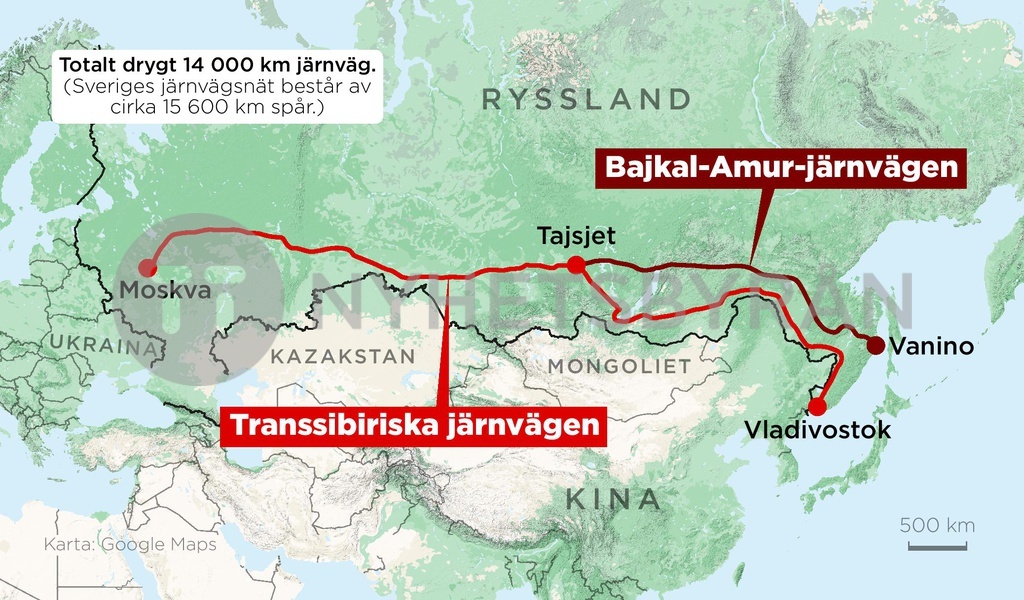 Transsibiriska järnvägen och Bajkal-Amur-järnvägen tillsammans består av drygt 14 000 km järnvägsspår. Det kan jämföras med hela det svenska järnvägsnätet som består av ca 15 600 km spår.