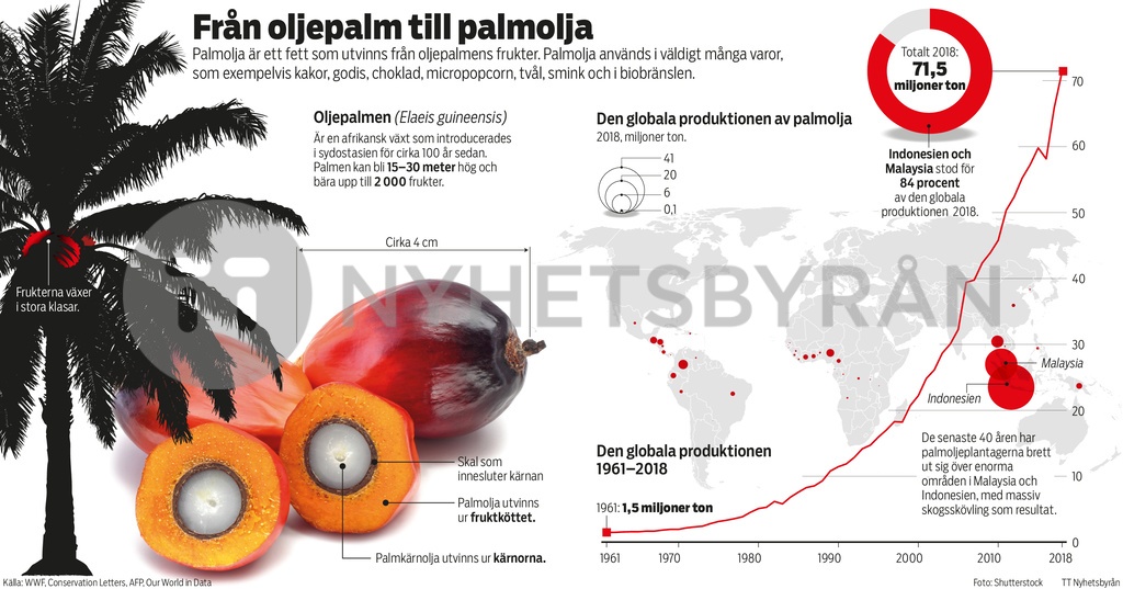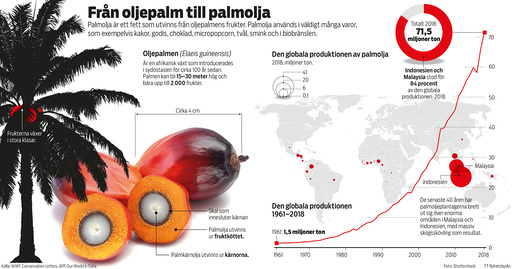 Palmolja är ett fett som utvinns från oljepalmens frukter. Palmolja används i väldigt många varor, som exempelvis kakor, godis, choklad, micropopcorn, tvål, smink och i biobränslen.